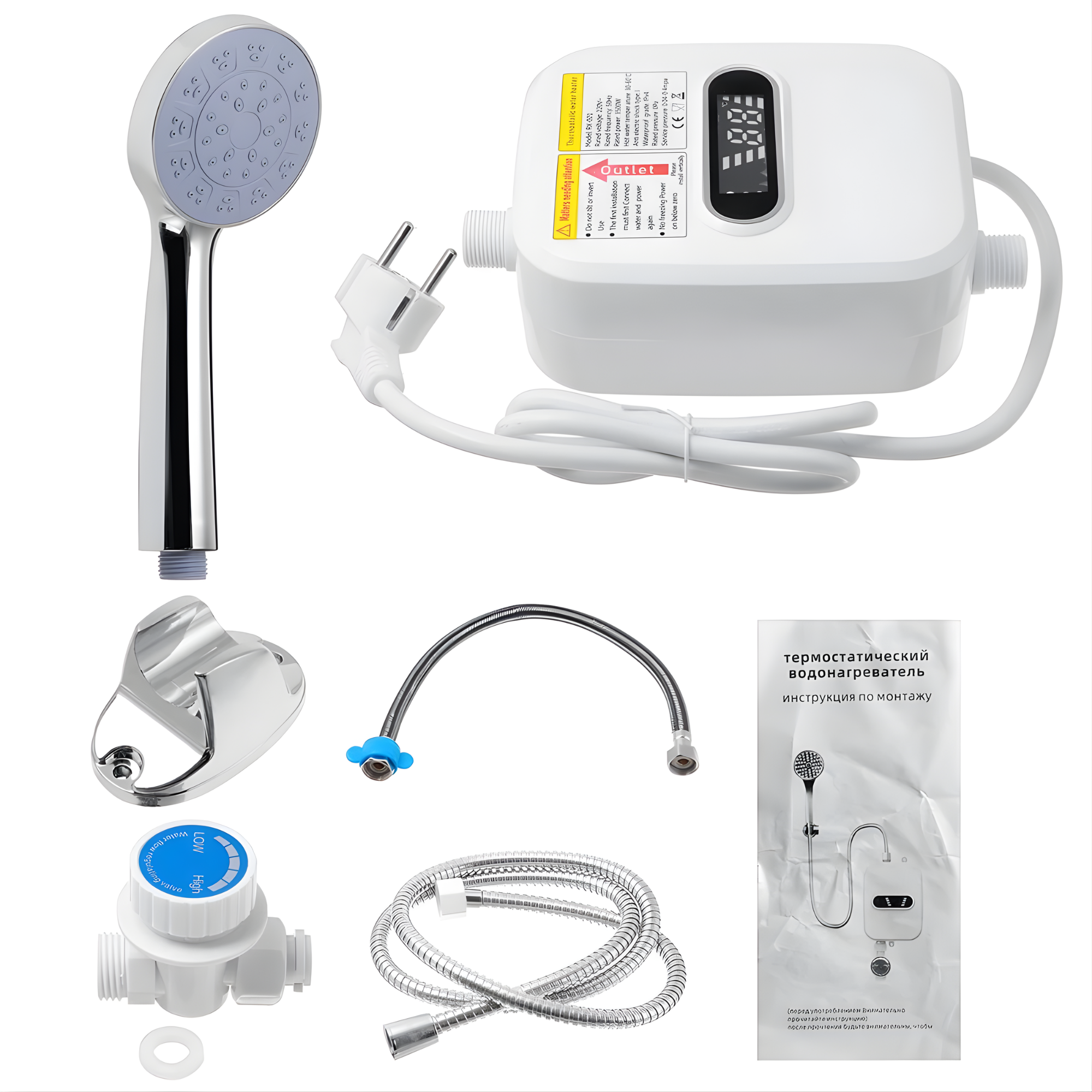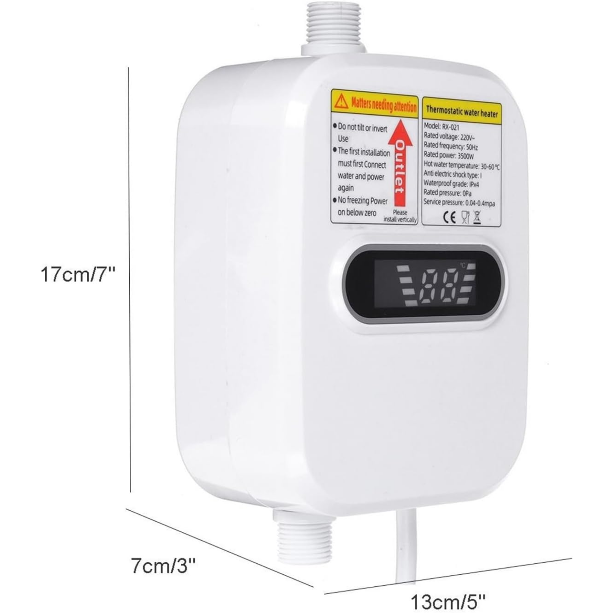 Indicador de temperatura: Este cabezal de ducha instantáneo tiene una pantalla LED para mostrar la temperatura del agua en tiempo real, puede ajustarlo de manera flexible a su situación pers" para evitar el sobrecalentamiento o la hipotermia de temperatura.
